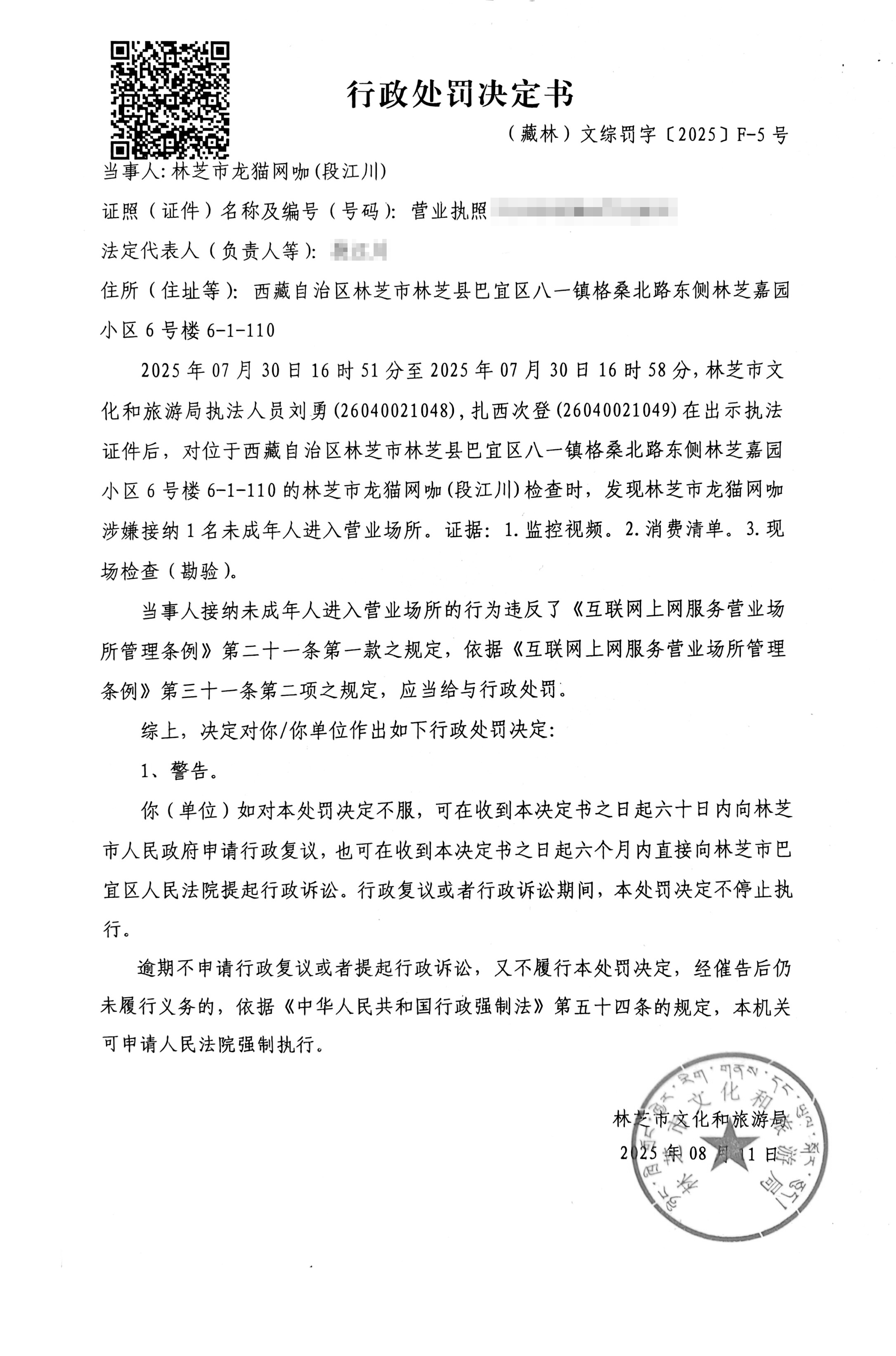 行政处罚决定书