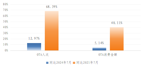(三)林芝市在线旅游运行概况。根据携程平台数据,2025年6月27日-7月28日线上预订林芝旅游产品的游客人次为91.57万人次,整体人次同比增长12.97%,环比增长39.13%,相较于2021年同比增长68.39%。带动线上消费总额约为1.68亿元。整体消费同比增长5.14%,环比增长49.46%,同比2021年增长40.11% 。